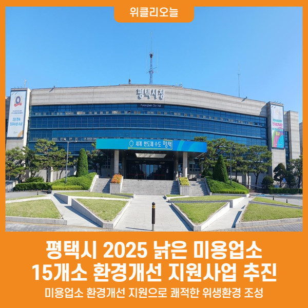 2025년 공중위생시설 환경개선 지원사업 고시 ○ 사업명 : 공중위생시설 환경개선 지원 ○ 사업대상 : 공중위생관리법 제2조에 해당하는 미용실 15개소 ※ 단, 신청일 기준 사업자 (모든 사업자는 공동명의로 함) 사업자 주민등록상의 주소가 1년 이상 평택시이어야 함 ○ 지원범위 : 환경개선비 80% 지원(최대 2원) 100만원, 20% 자부담) – 건물외관 : 외벽수리, 간판보수 등 외부환경 유지관리 – 내부시설 : 세면대, 샴푸의자, 전기온수기 등 시설교체 – 출입구 : 현관문 교체, 창문 등 – 실내 : 바닥 타일, 조명, 벽지 등 – 기타 위생적인 환경 조성을 위한 비용… www.pyeongtaek.go.kr