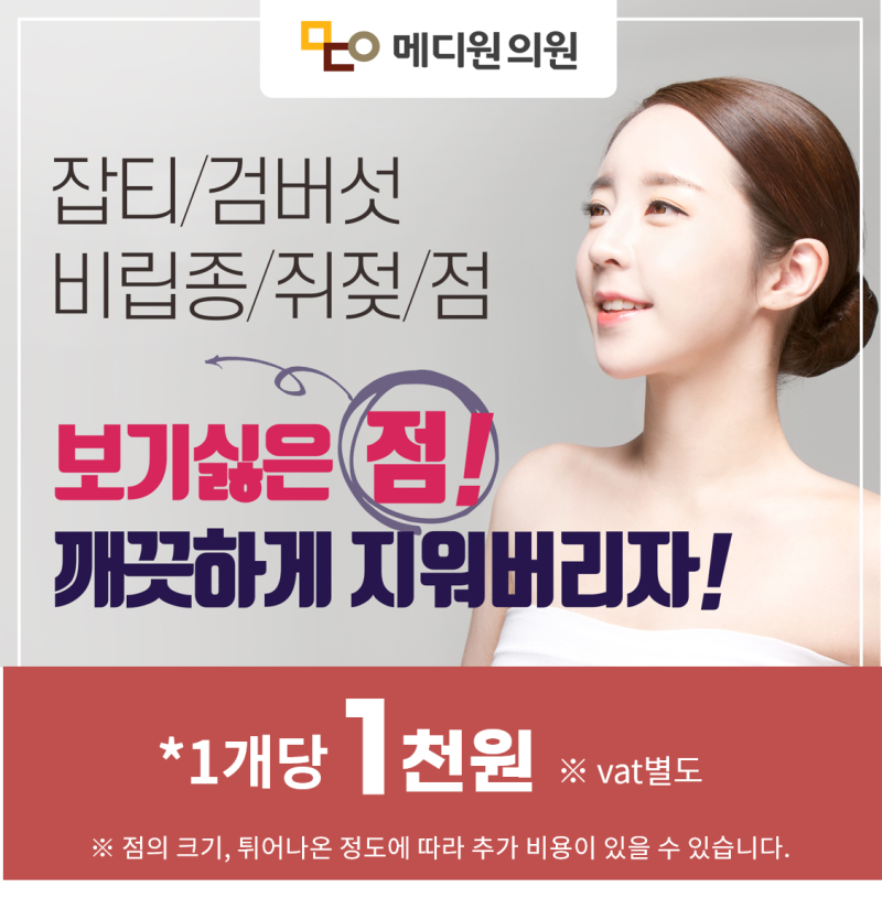 레이저 시술시 편평 사마귀의 크기에 따라 레이저 크기를 조절하여 피부조직 손상을 줄이는 방향으로 시술합니다. 평면 사마귀를 단순한 색소 장애로 방치하면 나중에 심하게 고통받을 수 있습니다. 의료진과 면밀한 상담을 통해 환자의 피부 상태, 위치, 크기, 환자 상태 등을 꼼꼼히 확인하고 치료받는 것이 좋습니다.치료를 위해서는 정밀한 진단을 통해 피부 병변의 종류와 원인을 정확히 파악한 후 개인의 피부 상태, 위치, 범위, 병변 특성 등을 고려한 맞춤형 치료가 적용되어야 합니다. 경험이 풍부한 의료진의 정확한 진단 아래 적절한 치료를 하는 것이 도움이 됩니다.성남피부과 메디원 의원에서는 편평사마귀 제거 비용을 개당 1천원으로 크기와 돌출 정도에 따라 추가 비용이 발생할 수 있습니다.
