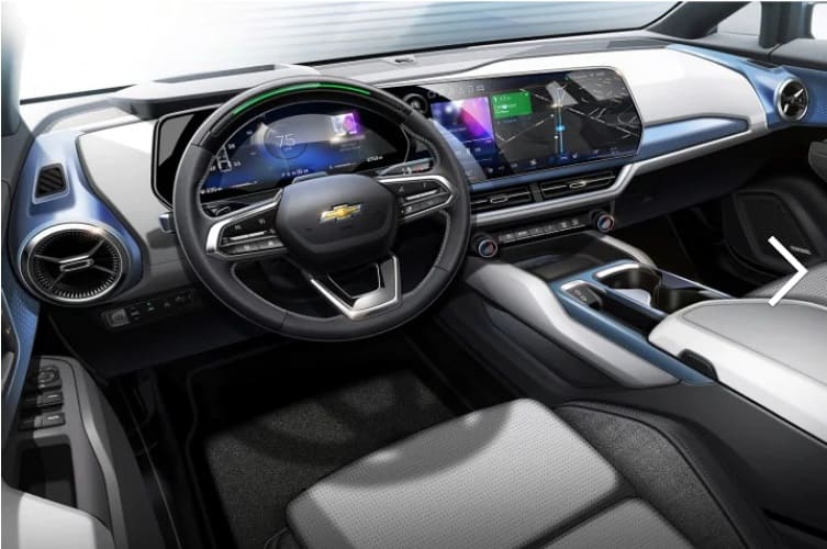 실내는 얼마 전 공개된 이쿼녹스 EV와 유사한 초신형 쉐보레 레이아웃 디자인을 적용했다.