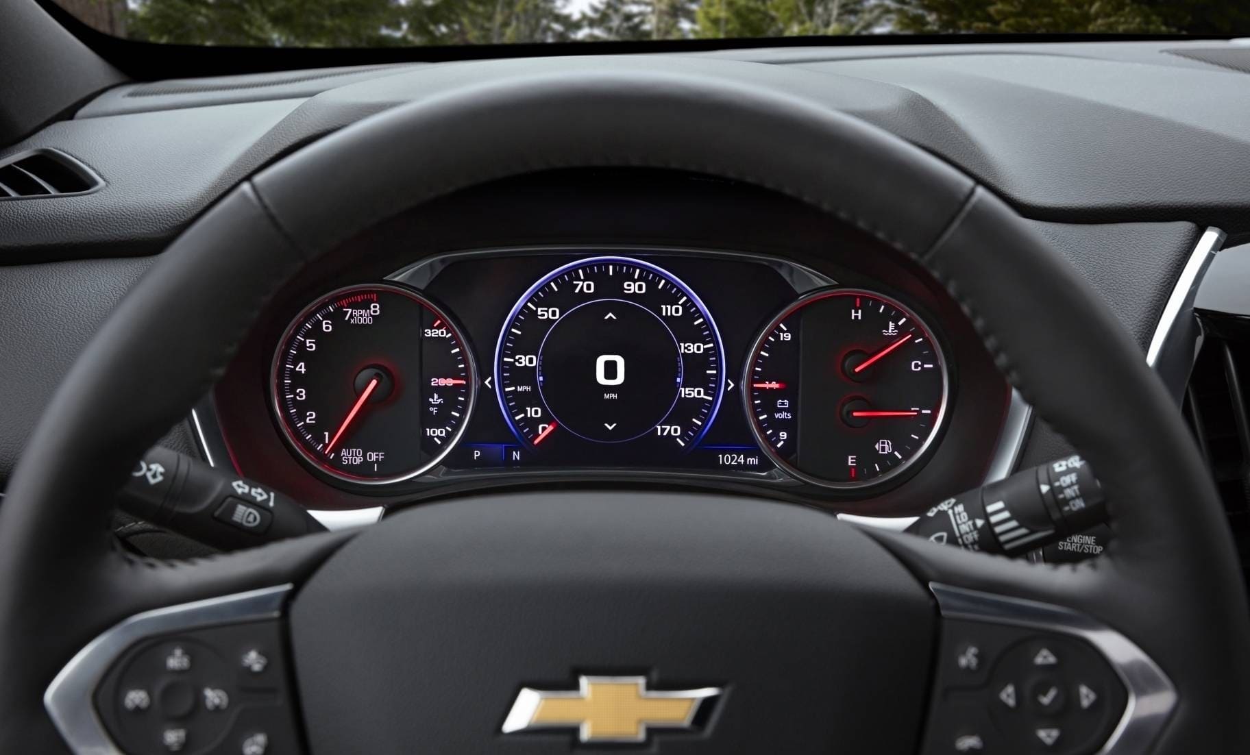 아날로그 방식을 고수한 쉐보레는 17인치로 예상되는 디지털 계기판과 터치 내비게이션의 조합이 돋보인다.