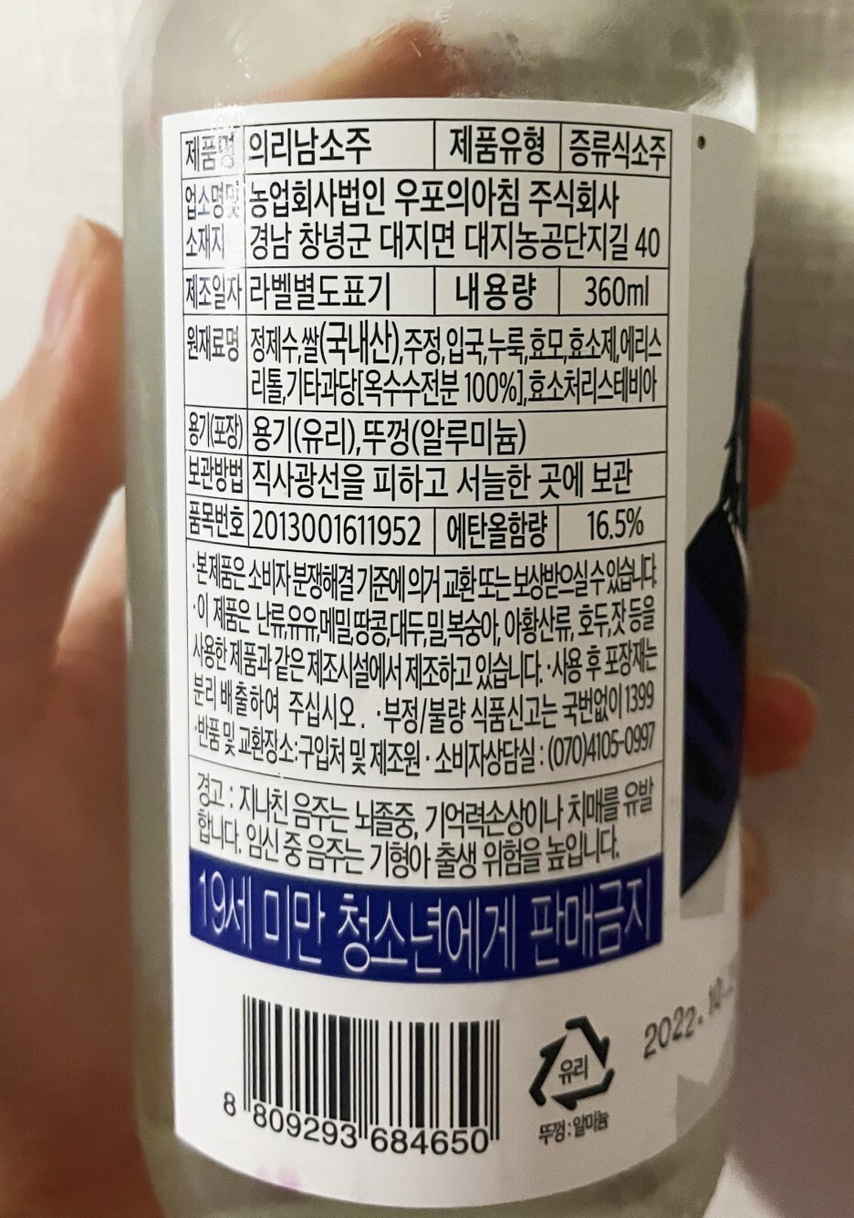 소주처럼 뒷맛이 많이 남지 않습니다.