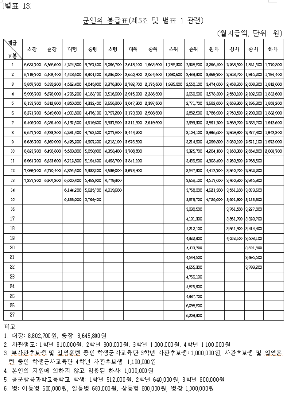 직업군인 월급 2023