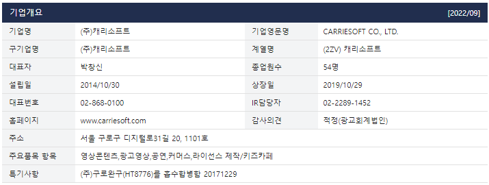 캐리소프트는 2014년 10월 어린이를 위한 디지털 콘텐츠 제작 및 유통을 목적으로 설립되었으며 서울특별시 구로구 디지털로에 본사를 두고 있습니다.