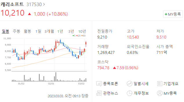 캐리소프트의 주가는 이번 보고서가 역대 최저 출생아 체중(0.78)으로 나온 뒤 윤석열 회장이 직접 저출산 정책을 강력히 추진하겠다고 밝히면서 상승했다.