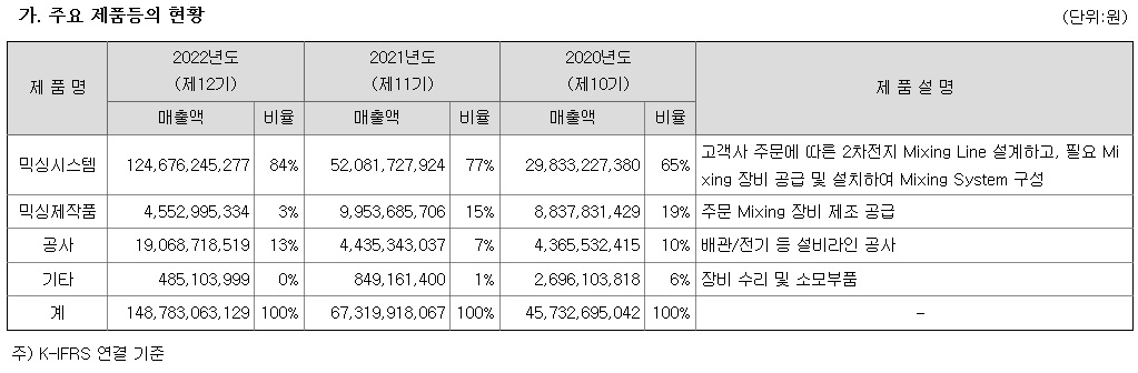 TSI는 2차전지 제조장비 제조업체로 주로 2차전지 양극과 음극을 만드는 전극 공정용 믹싱 장비를 만들고 있다.